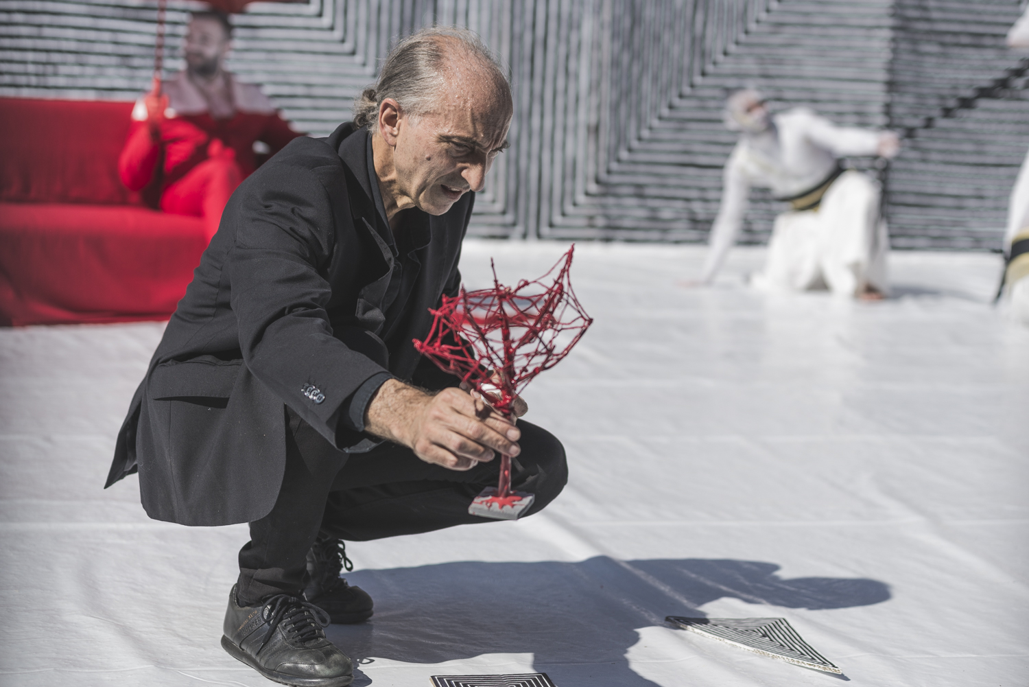 Mentre stanno cominciando i preparativi per Naturae. La valle dell’innocenza – secondo quadro, lo spettacolo site specific per il Padiglione Nervi dell’Ex Salina di Stato di Saline di Volterra (doppia replica l’8 e il 9 agosto, biglietti disponibili sul sito ufficiale della compagnia), ecco alcuni scatti di Nico Rossi effettuati durante l’ultima delle 6 repliche: